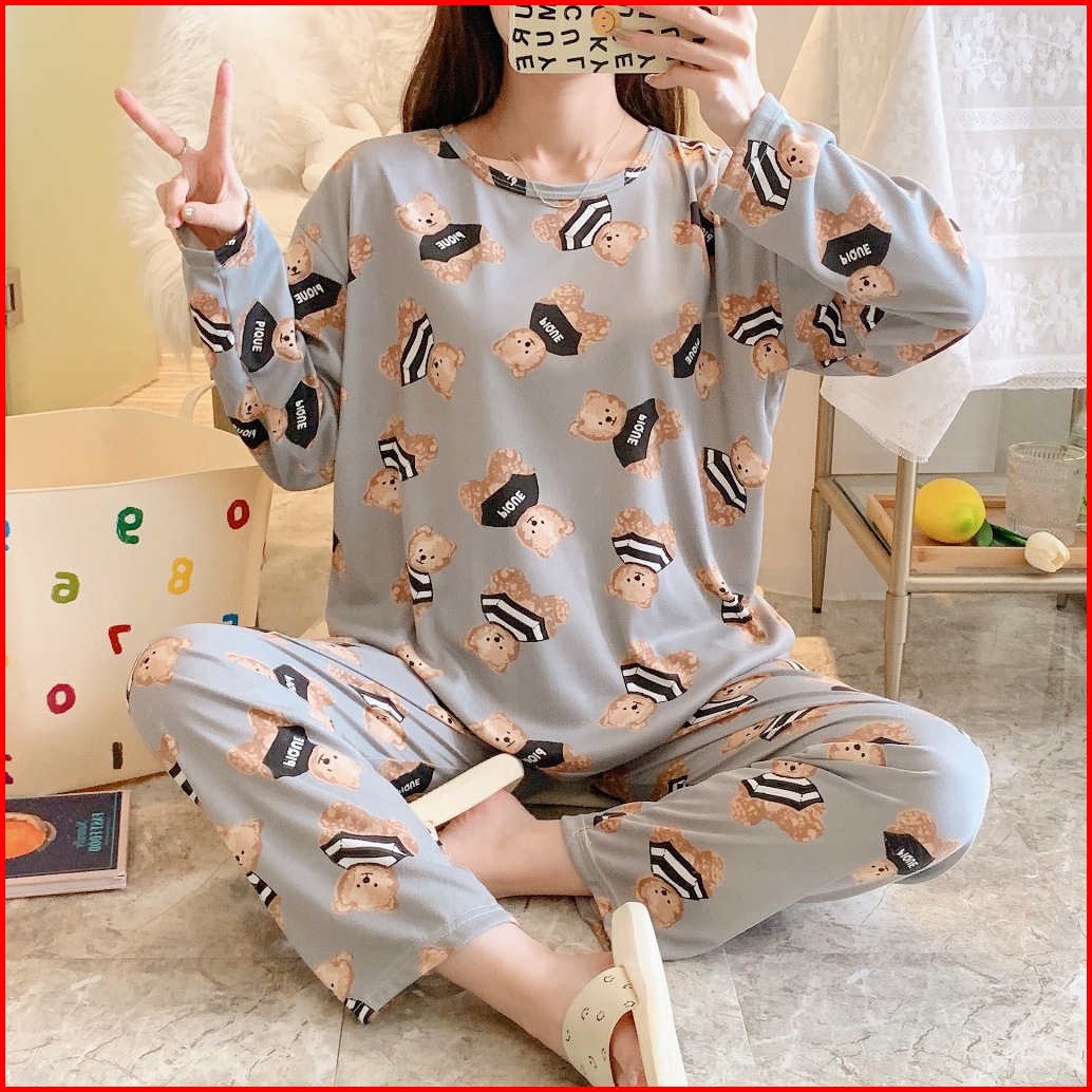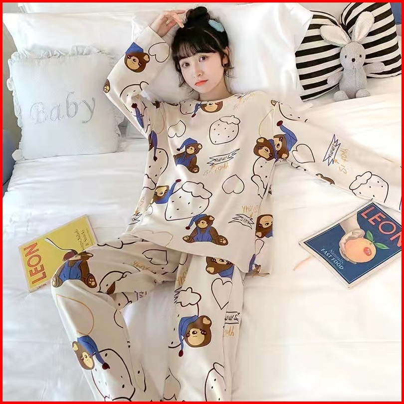 2024 Baju Tidur Wanita Piyama Lengan Panjang Setelan Baju Tidur Wanita Piyama Wanita Piyama Wanita Set