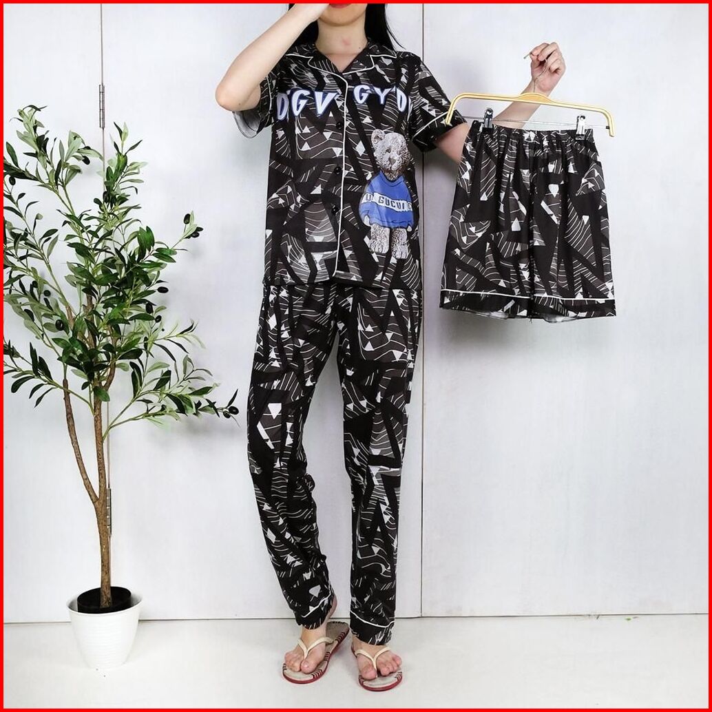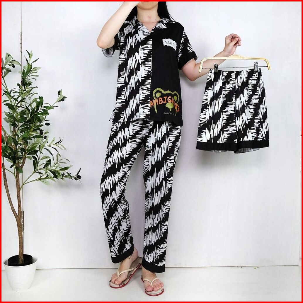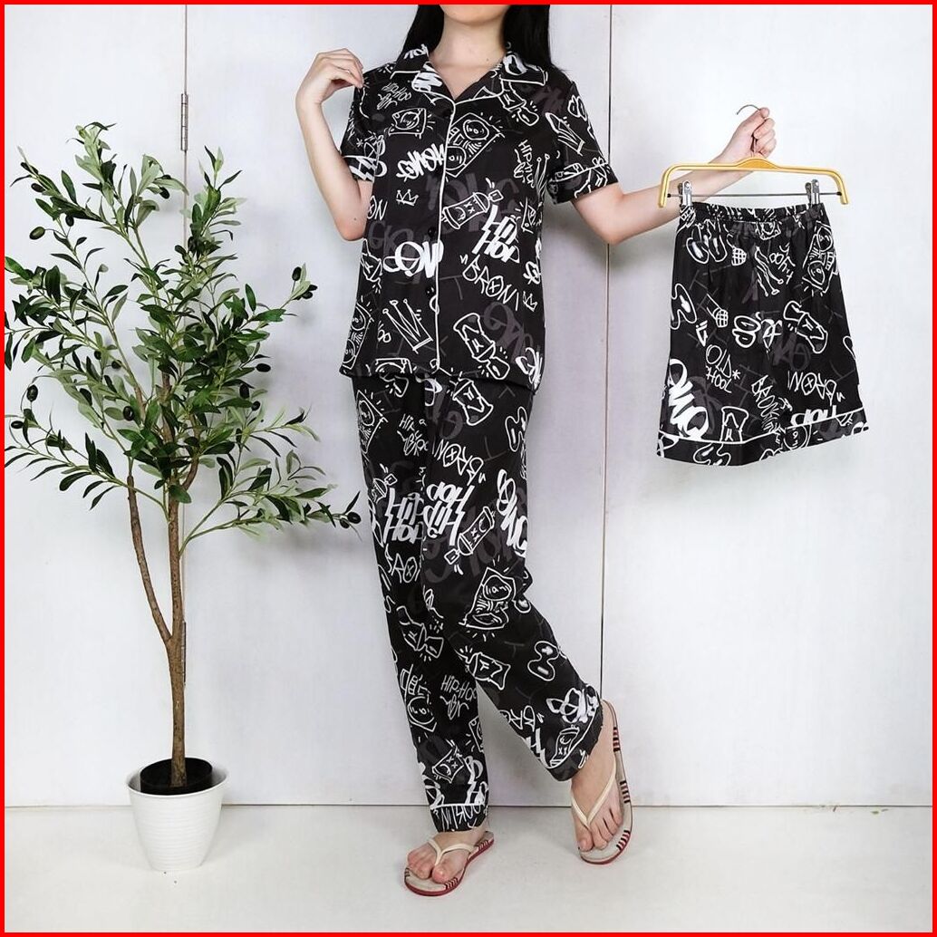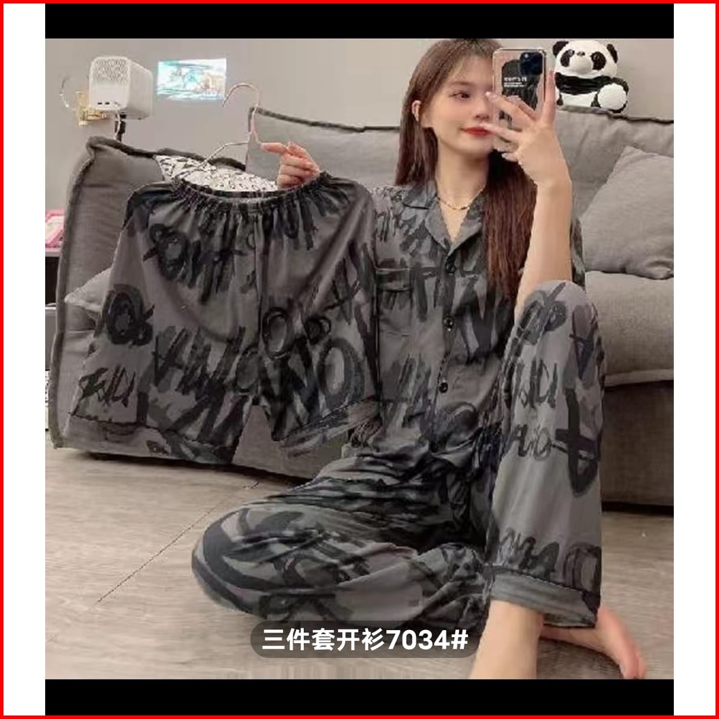 31004 Piyama 3in1 Import Full Kancing Grosir Baju Tidur Wanita Dewasa Terbaru Jumbo