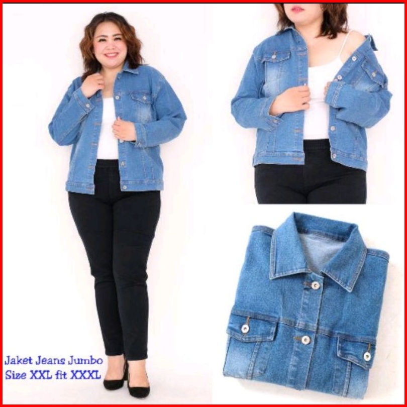 Jaket Jeans Wanita Jumbo Xxl Fit Xxxl . Jaket Jeans Jumbo . Jaket Jeans Big Size Murah . Jaket Oversize