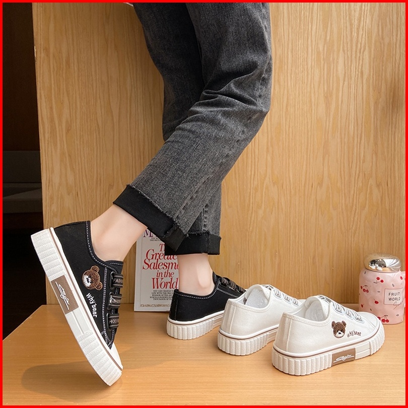 Sepatu Sneakers Kanvas Wanita Casual Sport Shoes Hitam Putih Onlinemall 225