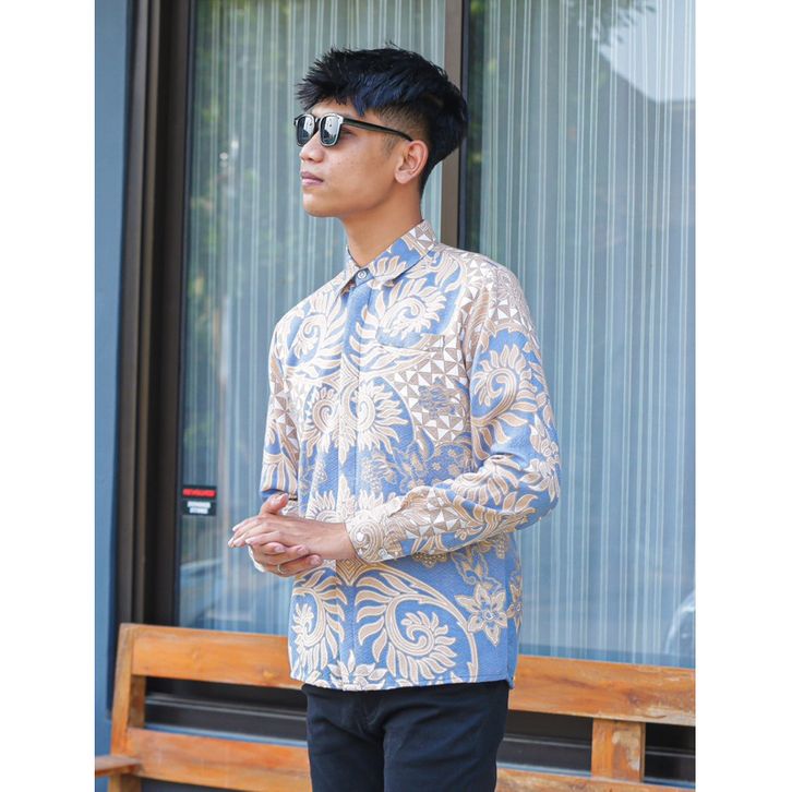 Terlaris BABY BLUE DOLBY Kemeja Batik solo Premium bahan katun dolby lapis tricot