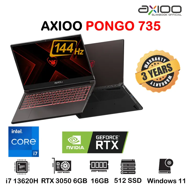 Laptop Gaming Axioo Pongo 735 Core i7 13620H (i7 Gen 13) RTX 3050 6GB Ram 16GB SSD 512GB Layar 15.6"FHD 144HZ Baru Resmi