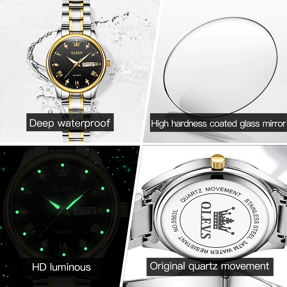 OLEVS Jam Tangan Wanita Original Anti Air Tahan Air Kecil Korea Analog Putih Gold Hitam Stainless Steel Women Watch