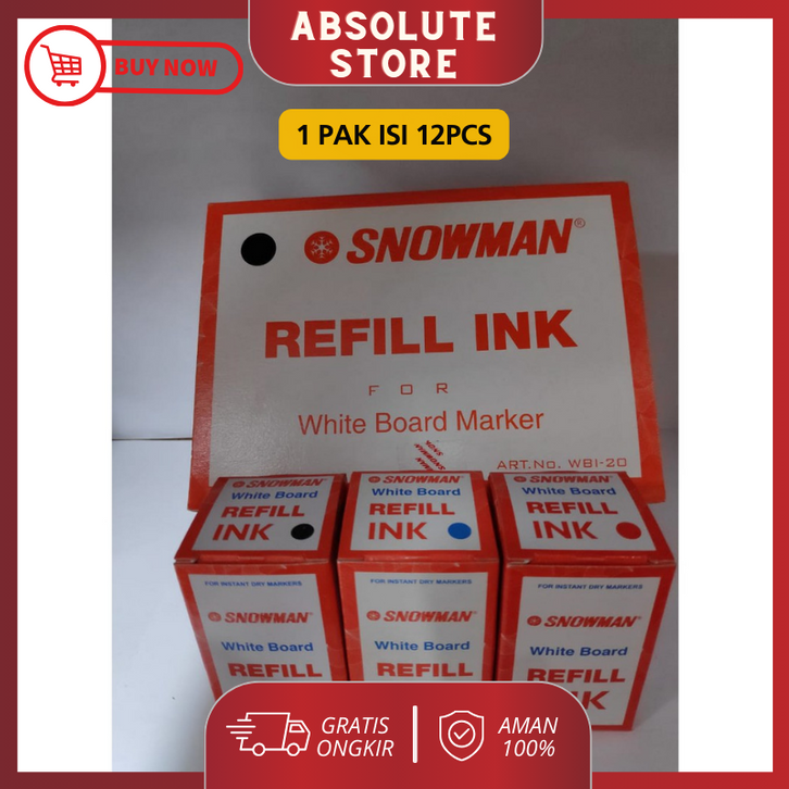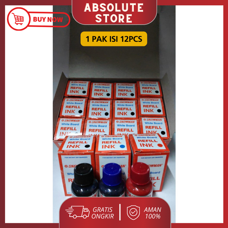 GRATIS ONGKIR - REFFIL / Isi Ulang Spidol Tinta Whiteboard Snowman isi 12pcs