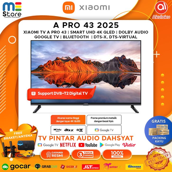 RESMI I Xiaomi Google TV A Pro 2025 43" Layar QLED 4K Ultra HD Dolby Vision® HDR10 | Dolby Audio, DTS-X, DTS Virtual:X