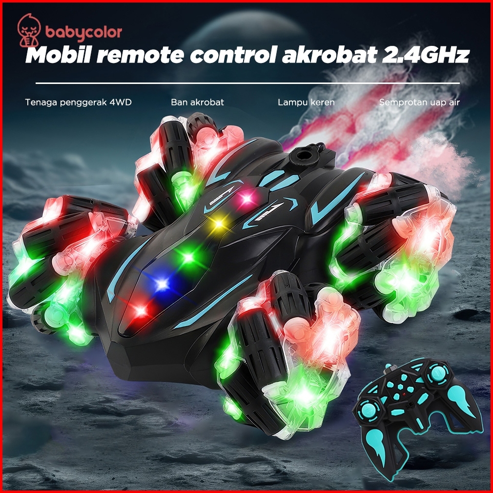Babycolor 2.4ghz Spray Mobil Remote Control Rc Stunt Car Mobil Mobilan Remote Control Dengan Lampu