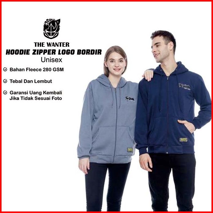 Thewanter Sweater Hoodie Bordir Ziper Cowok Tebal Distro Size M L Xl Xxl
