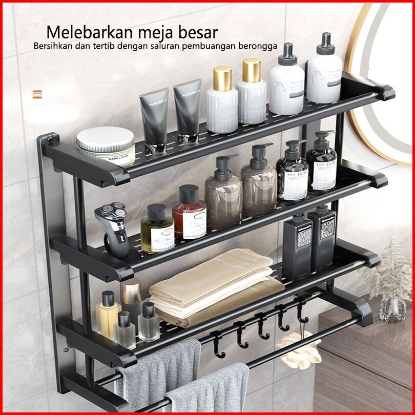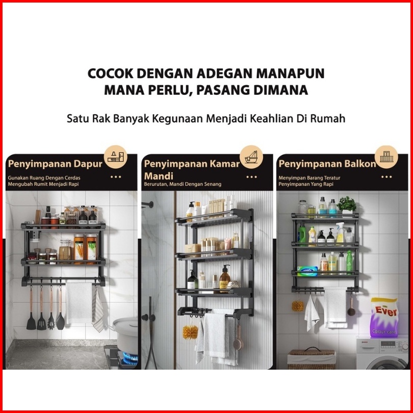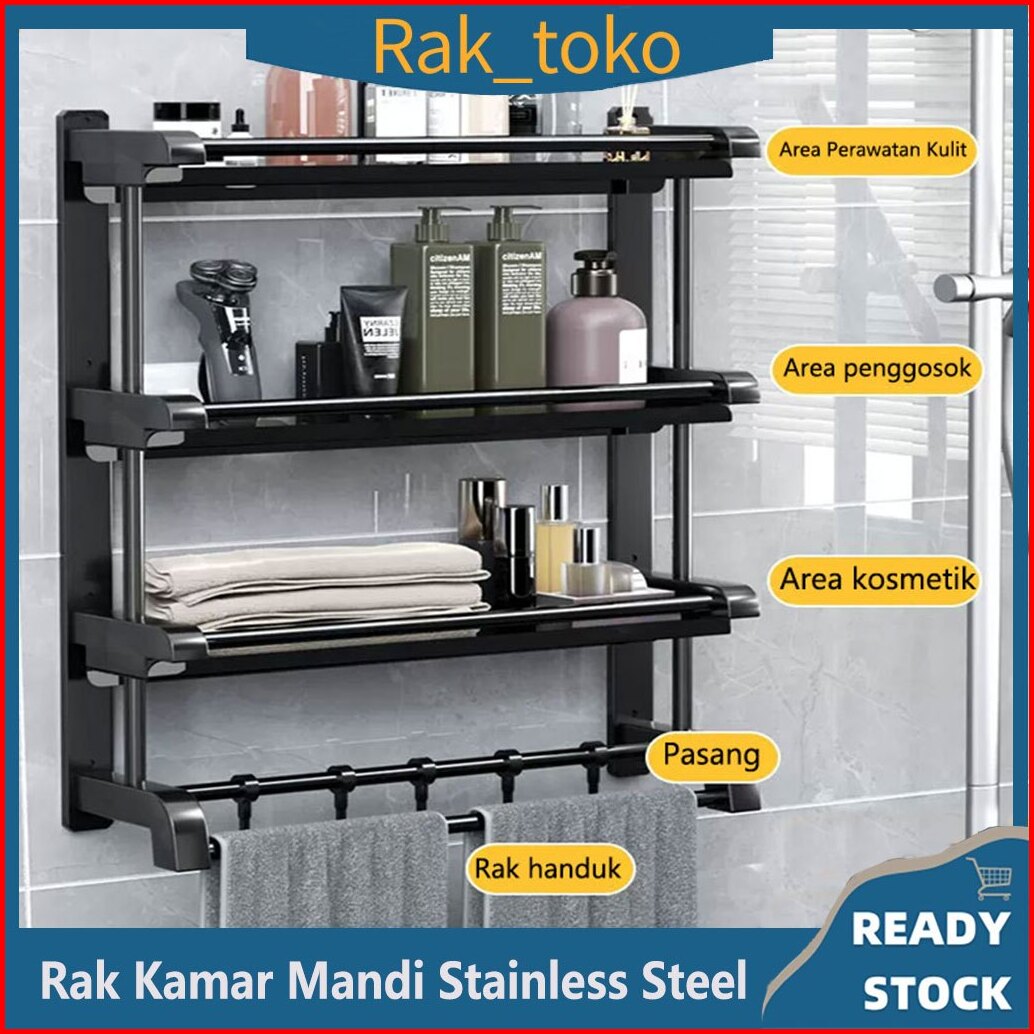 Rak Kamar Mandi Dinding Rak Bumbu Dapur Stainless Steel Rak Tempel Gantung Rak Handuk Dapat Dipasang Tanpa Harus Diluban