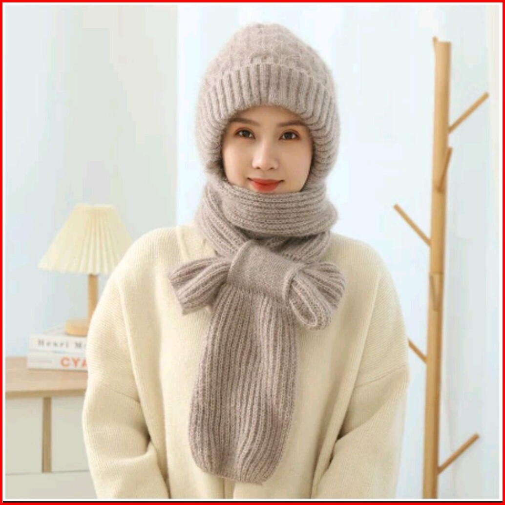 Topi Kupluk Syal Wanita Musim Dingin Hijab
