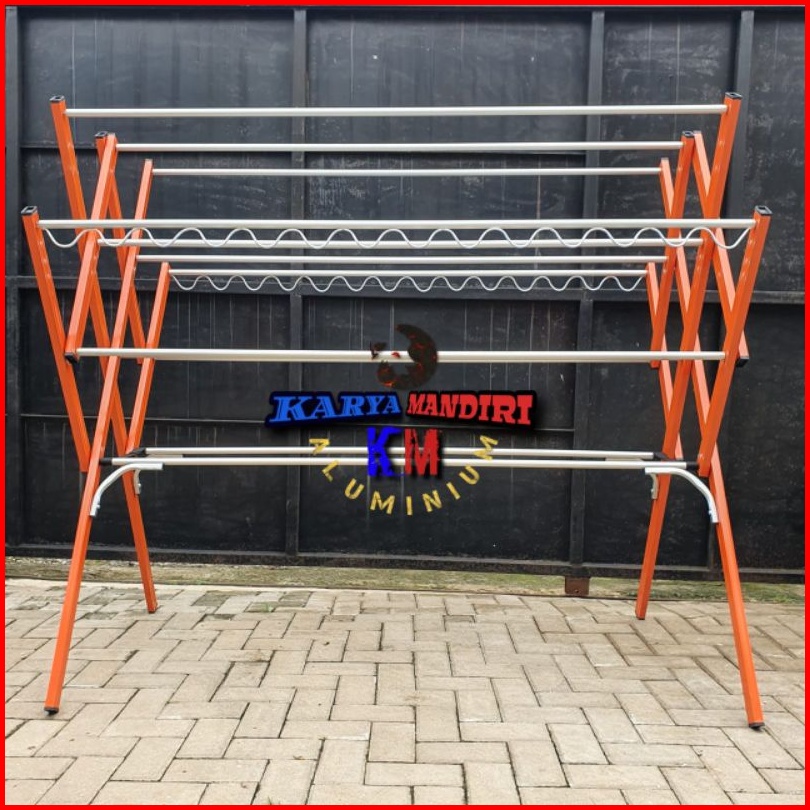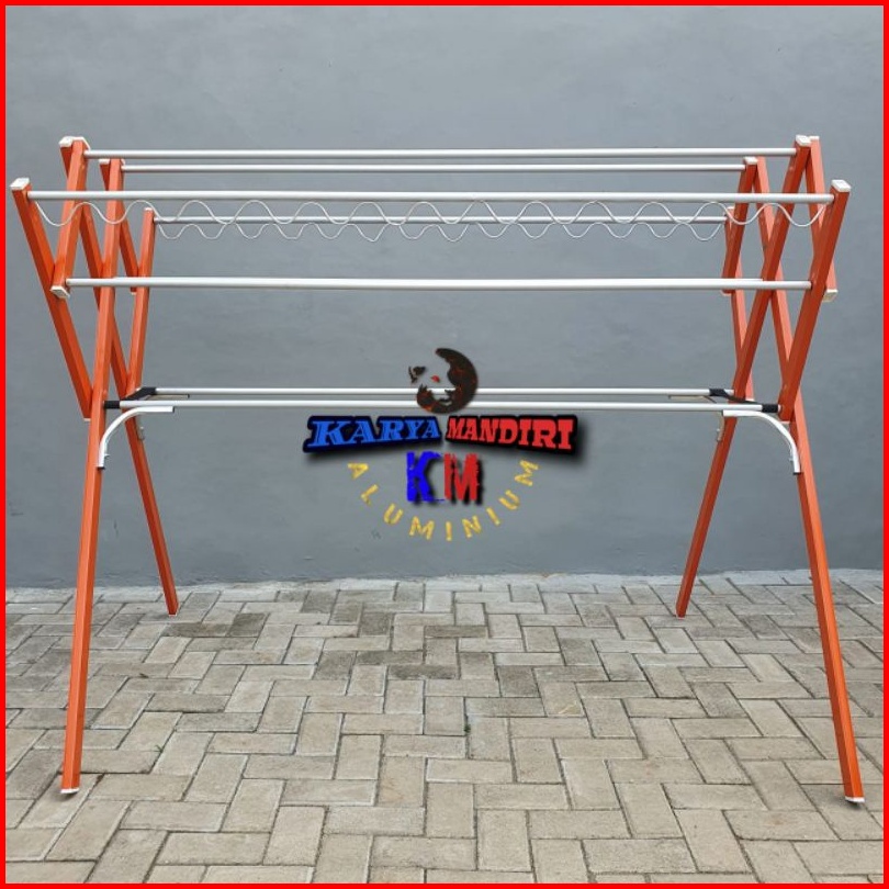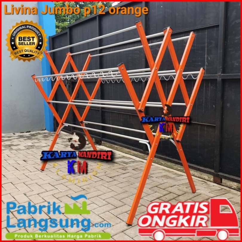 Jemuran Baju Livina Jumbo P12 Pakaian Lipat Aluminium Warna 180 Cm 1 8 Meter Orange