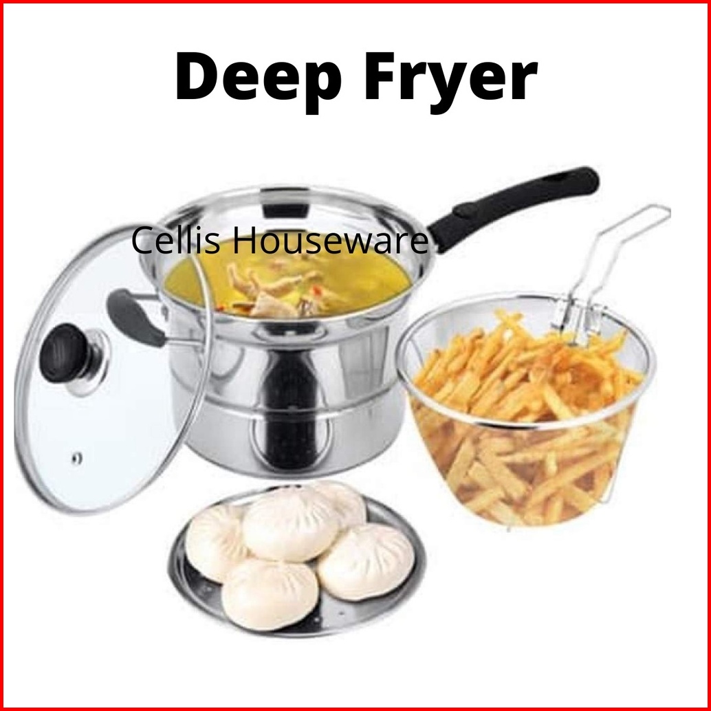 Deep Fryer 2 Kp Panci 3 In 1 22 Cm Multifungsi 3 In 1 - Stainless Free Sendok Sayur