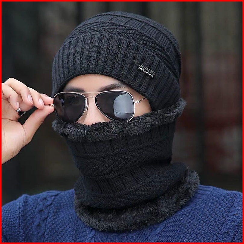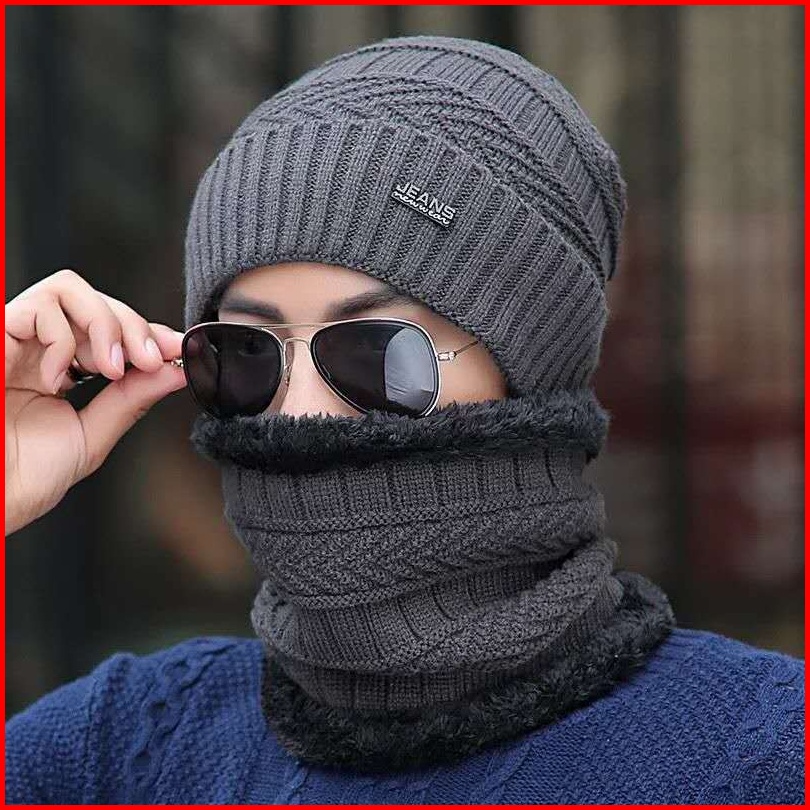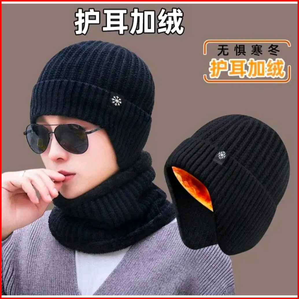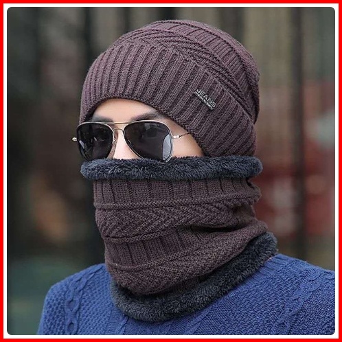 Topi Kupluk Dan Syal Set Pria Wanita Musim Dingin