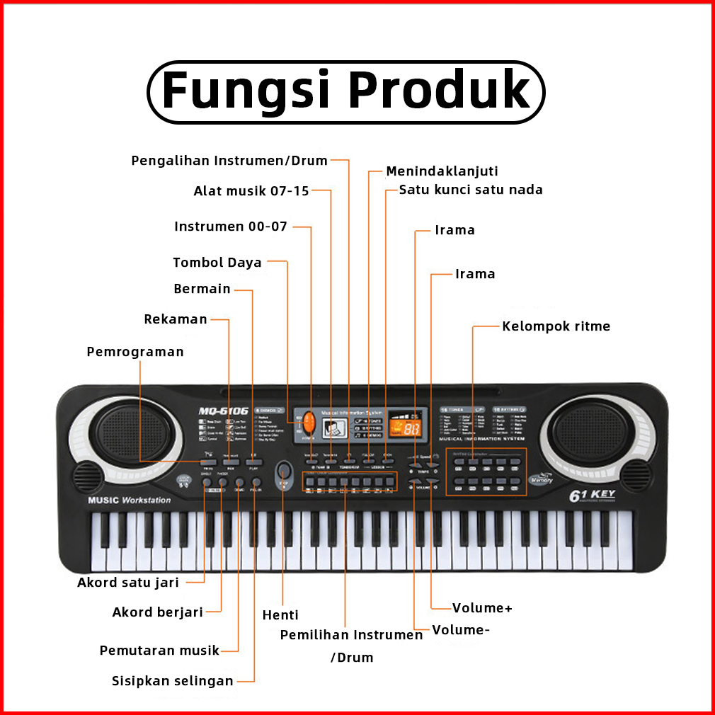 Babycolor Mainan Piano Keyboard Elektronik 61 Keys Portable Digital Keyboard Piano Electronic Musik