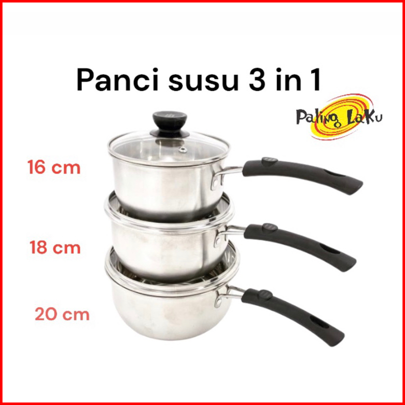 Paling Laku Panci Souce Pan 3 In 1 Stainless Stell - 16 Cm 18 Cm 20 Cm