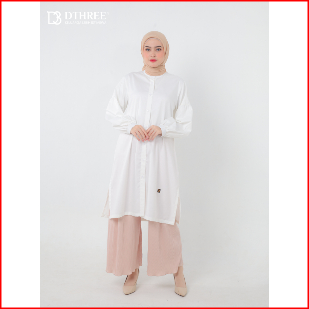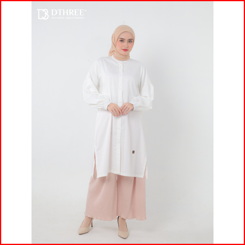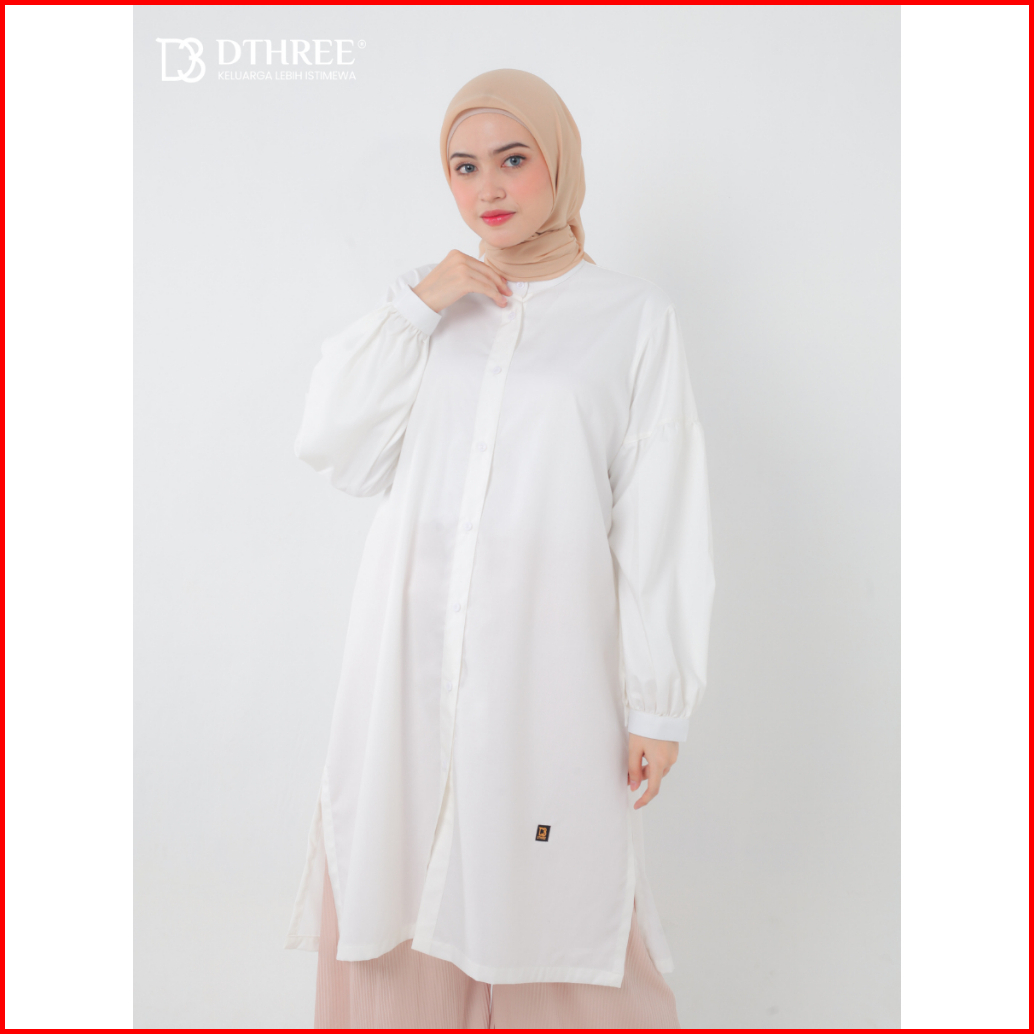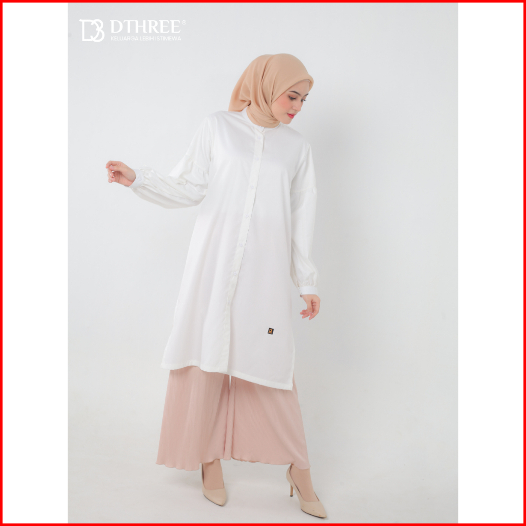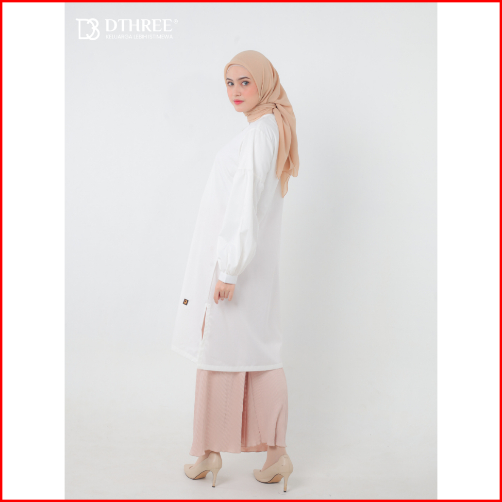 Dthree - Tunik Rajwa Series White Tunik Basic Long Tunik Atasan Wanita