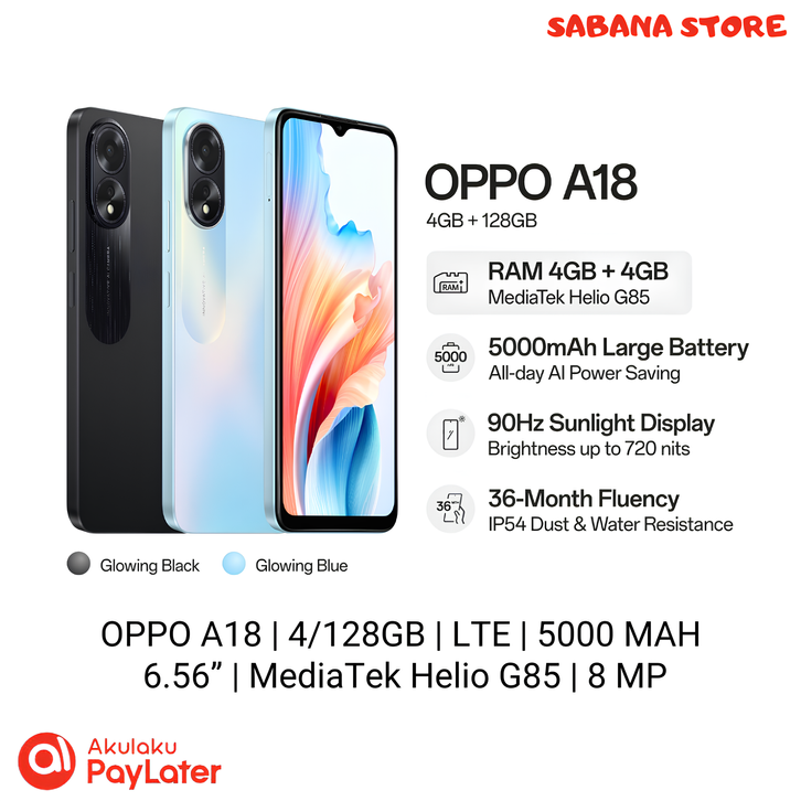 OP'PO A18 4GB/128GB 5000MAH LARGE BATTERY, 90HZ SUNLIGHT DISPLAY, IP54 DUST WATER RESISTANCE / HP ANDROID MURAH / OP'PO