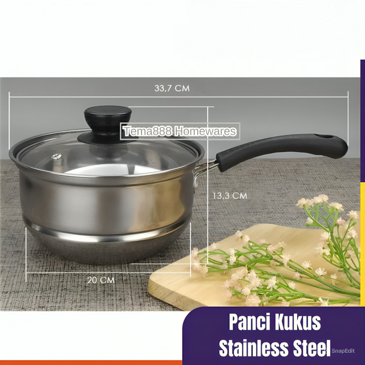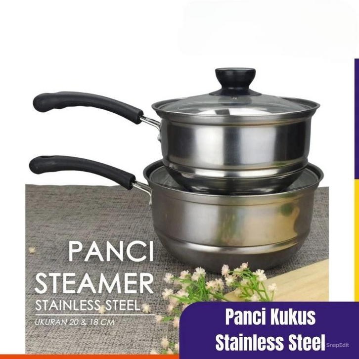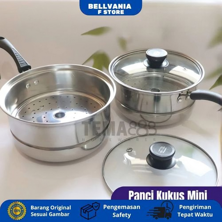 Panci 1 Set Lengkap Anti Lengket Stainless Steel 20cm Rebus Kukus Serbaguna Tutup Kaca Tahan Panas