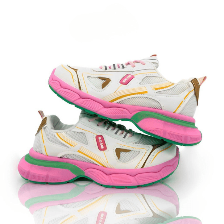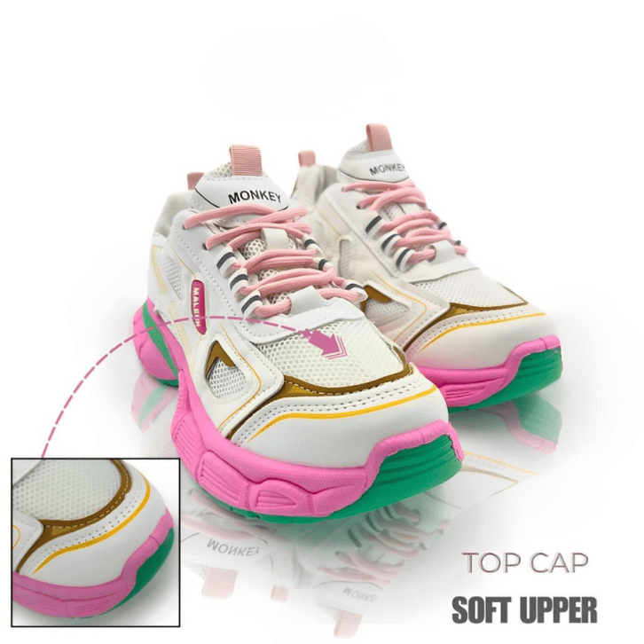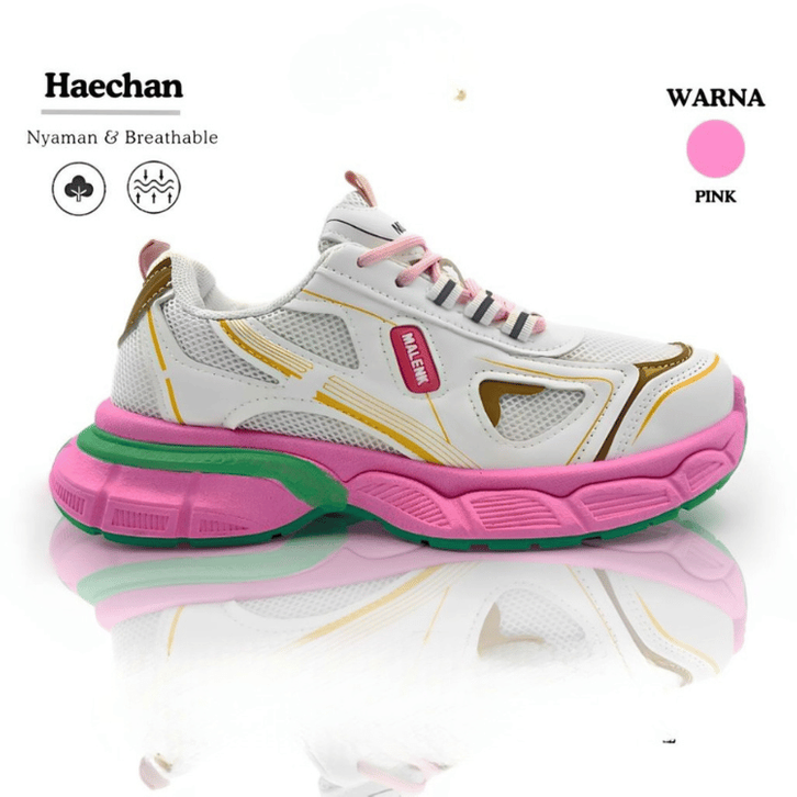 Sepatu Wanita Sneakers White List Pink And Green Sport Shoes Kuliah Olahraga Kerja Putih,Pink Dan Green Koreaan