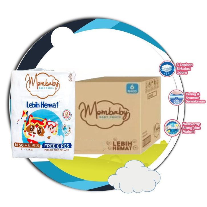 Paket1 Dus MOMBABY PANTS S54+6 M50+6 L42+6 XL36+6 XXL32+6 POPOK CELANA BAYI x 4 Ball