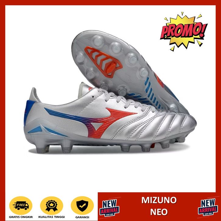 ( GRADE ORIGINAL ) Sepatu Bola MIZUNO Morelia Neo 4 Silver Gradient