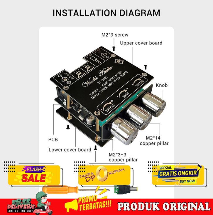 【】【Stok Tersedia】BERHARGA ZK-302T Bluetooth digital power amplifier board module 2.0 stereo dual channel 30W+30W with