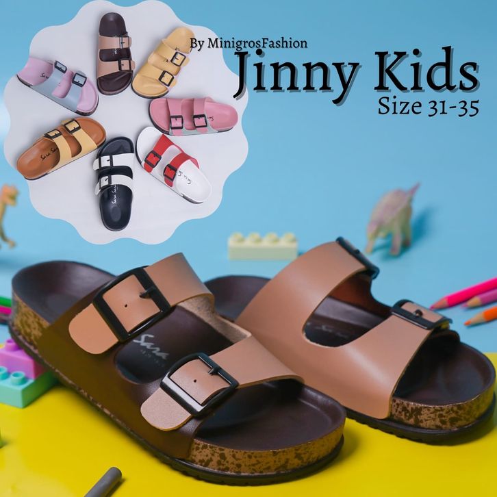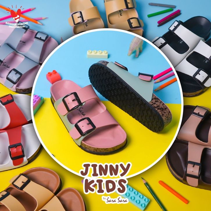 Sara Sara JINNY Tanggung sandal anak perempuan flat gesper slop cewek casual kekinian Free Ongkir