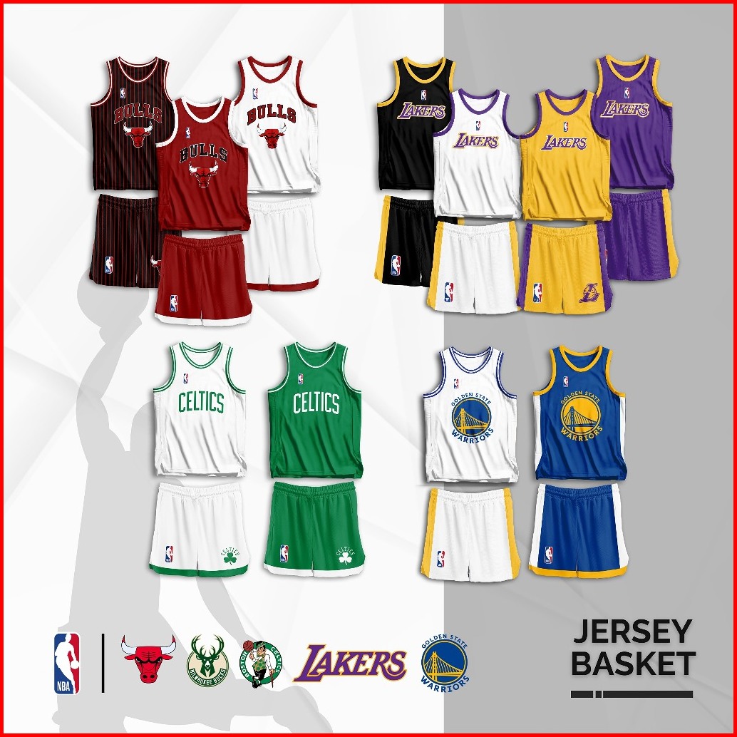 Jersey Basket Nba Chicago Bulls Lakers Warriors Celtics All Series Fullprint One Set