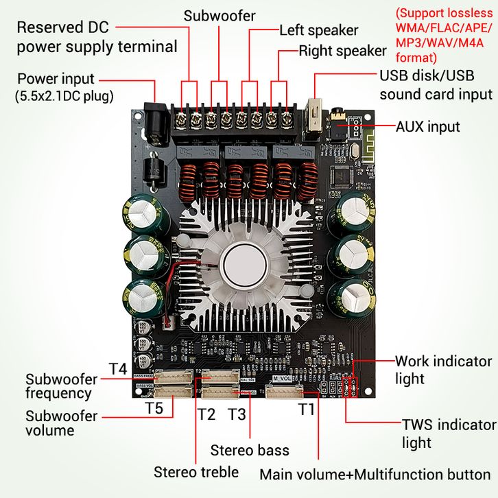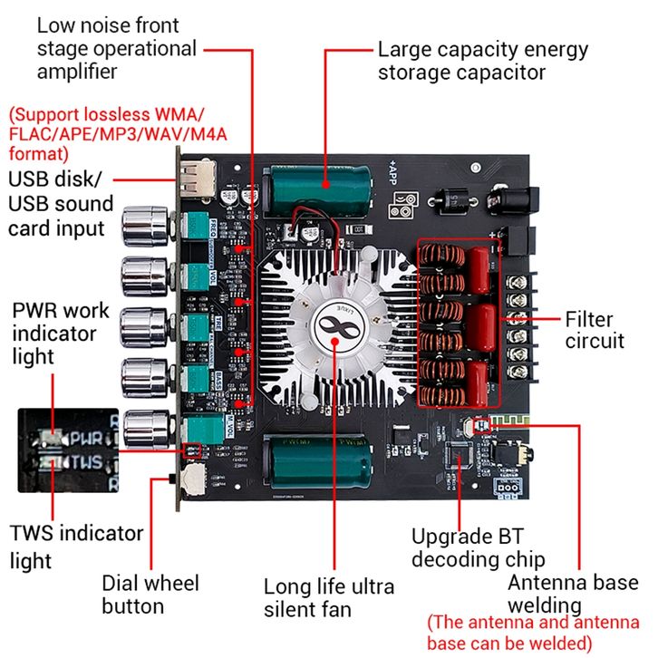 【】【Stok Tersedia】BERHARGA ZK-HT21/HT22 Modul Amplifier Daya Bluetooth Bertimbal 2.1 Saluran TDA7498E Subwoofer Nada