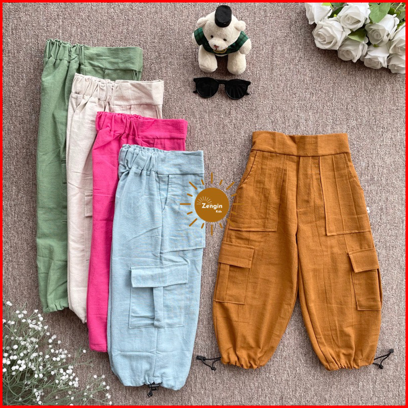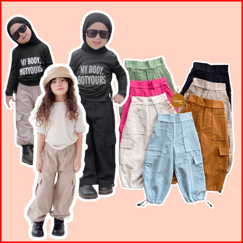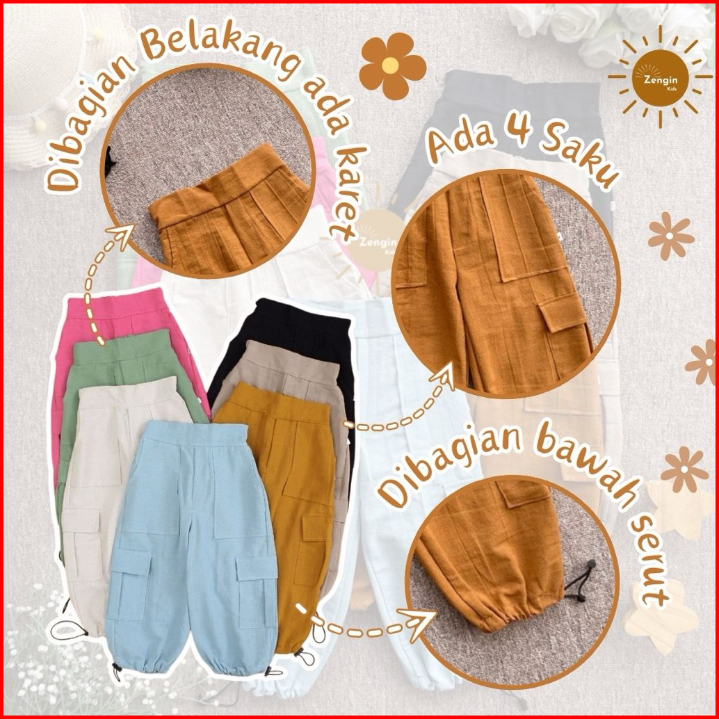 2-6th Joyi Celana Anak Joger Cargo Kargo Serut Linen Bangkok