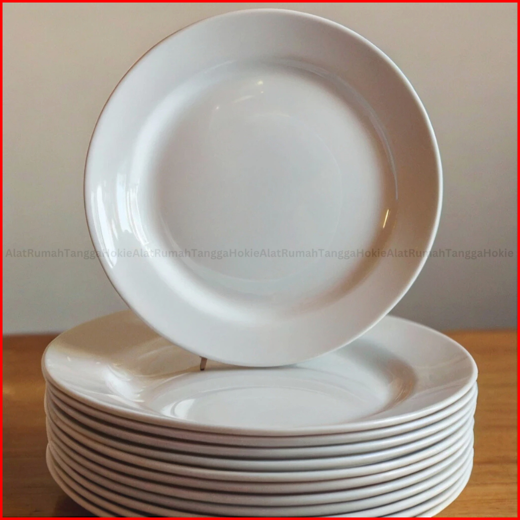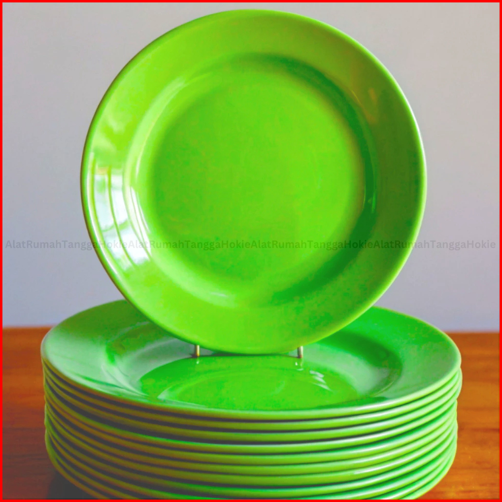 12 Pcs Piring 22cm Semi Melamin Gratis Bubble Putih Hijau Semi Melamine Cekung