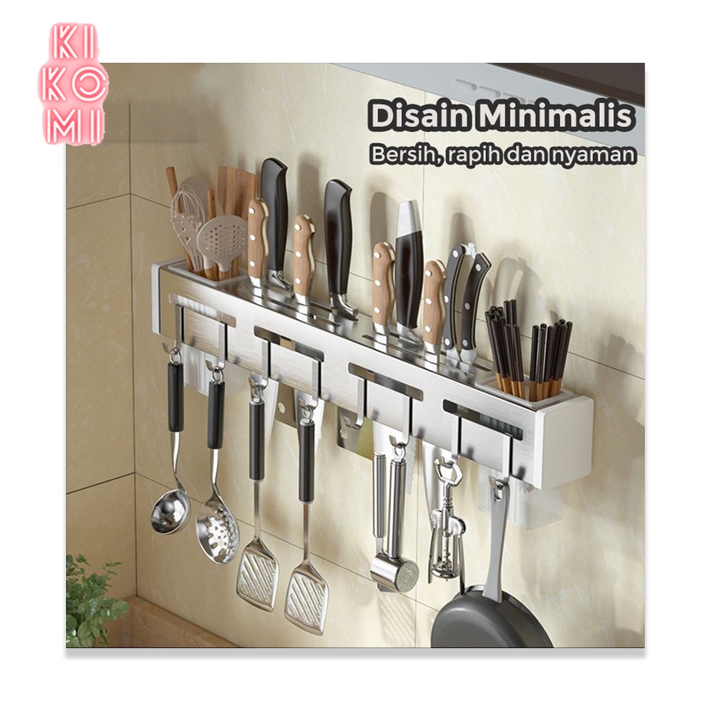 RAK DAPUR GANTUNG STAINLESS STEEL TEMPAT PISAU SENDOK GARPU BUMBU KK