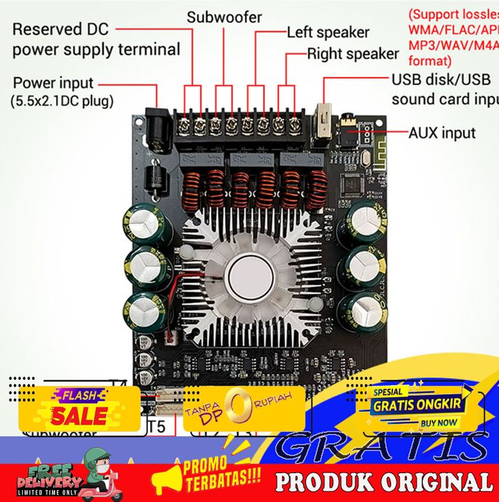 【】【Stok Tersedia】BERHARGA ZK- HT22 leaded Bluetooth power amplifier module 2.1 channel TDA7498E tone subwoofer