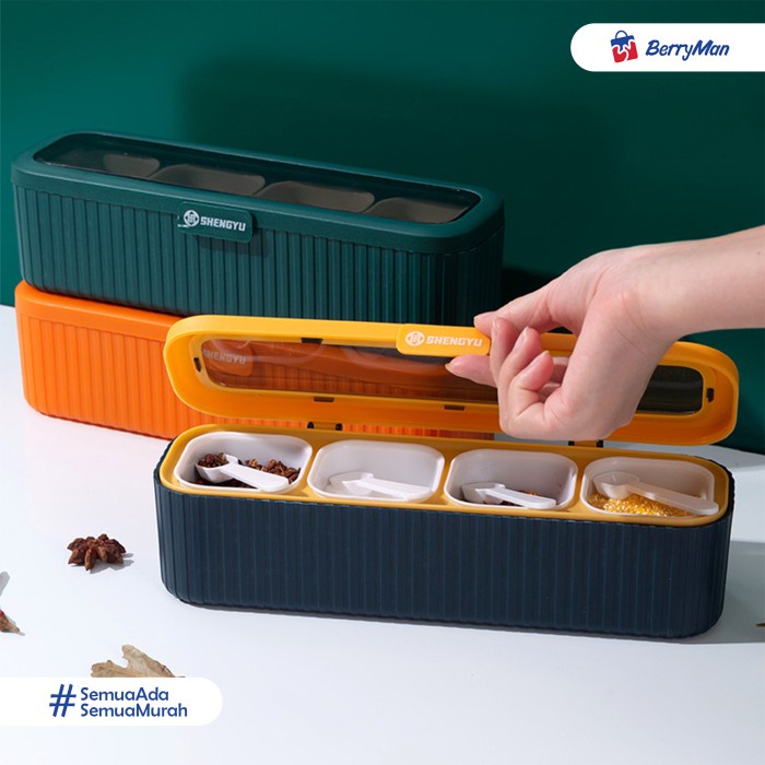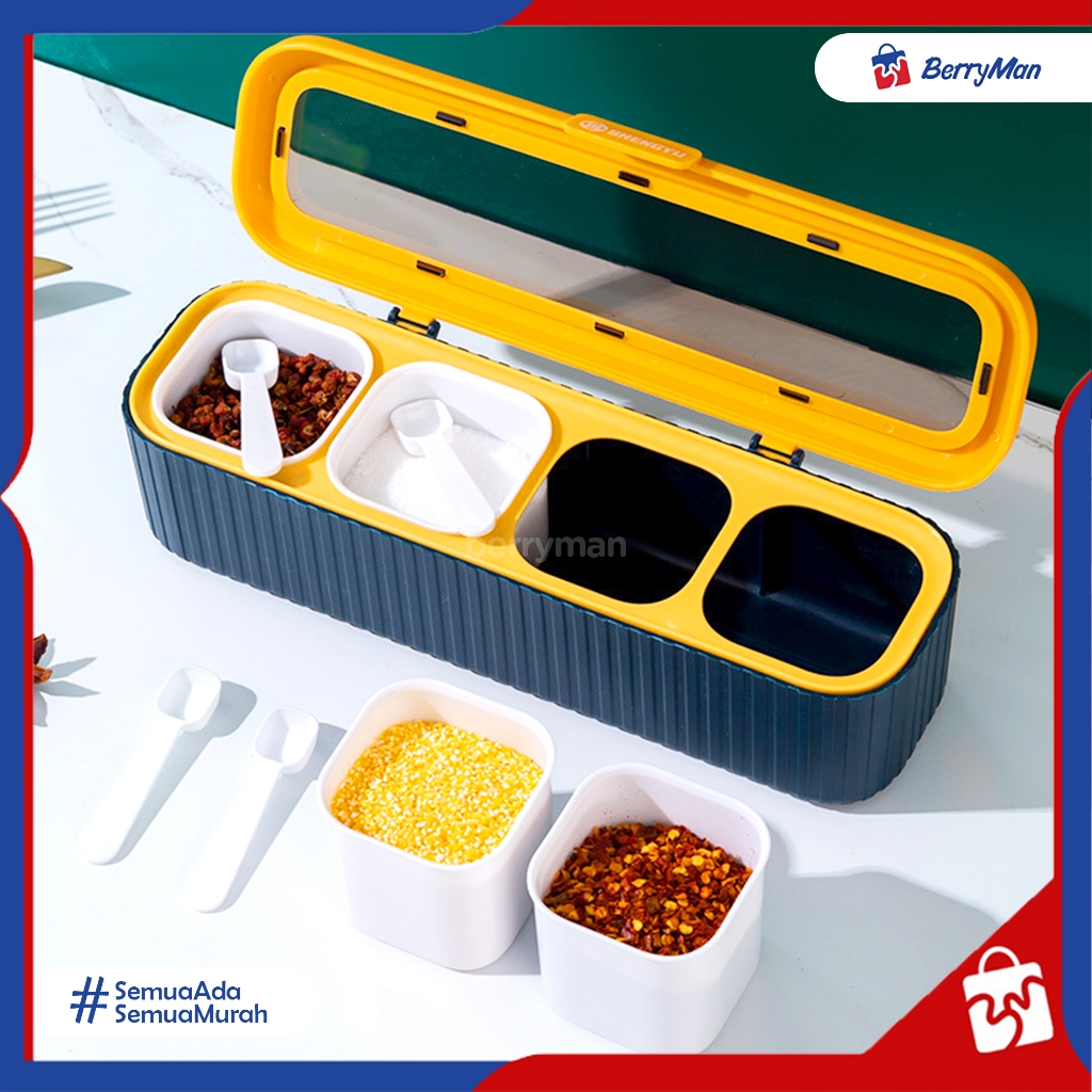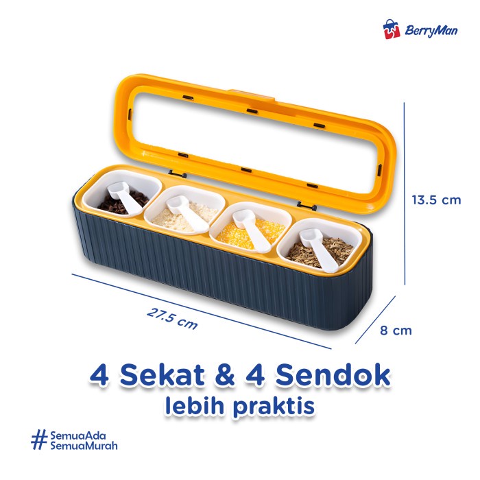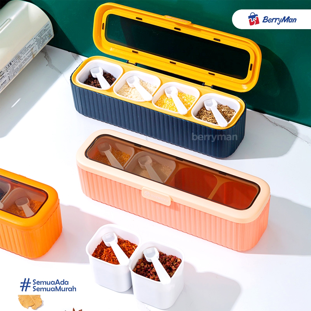 RAK KOTAK TEMPAT PENYIMPANAN BUMBU DAPUR SET 4 IN 1 + SENDOK TAKAR