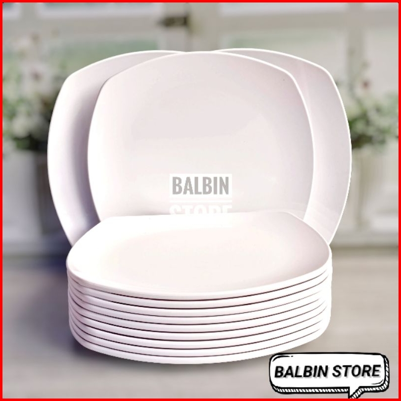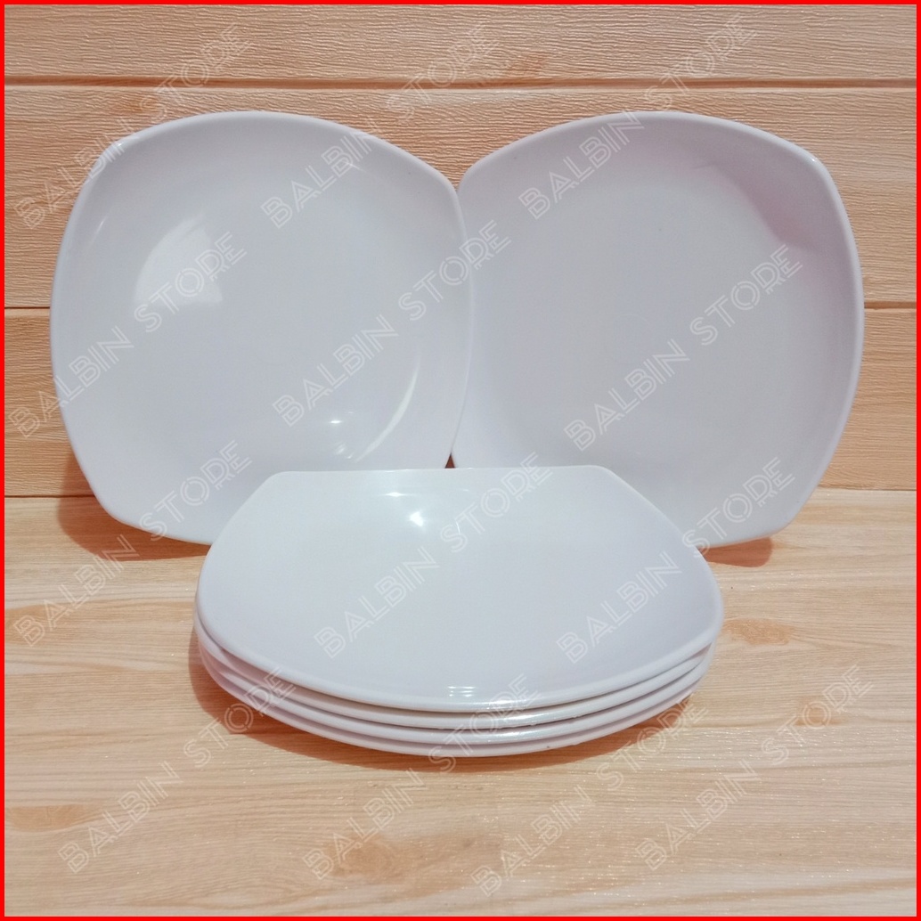 6 Pcs Piring Melamin Model Kotak Uk 23 Cm Model Ceper Piring Makan Piring Melamine Piring Putih Piring Saji Tahan Panas