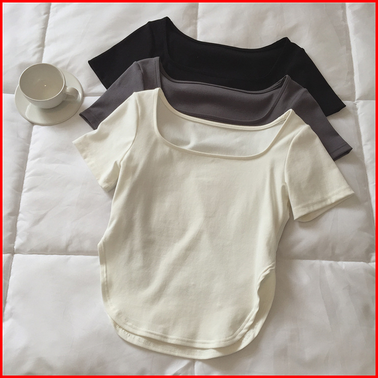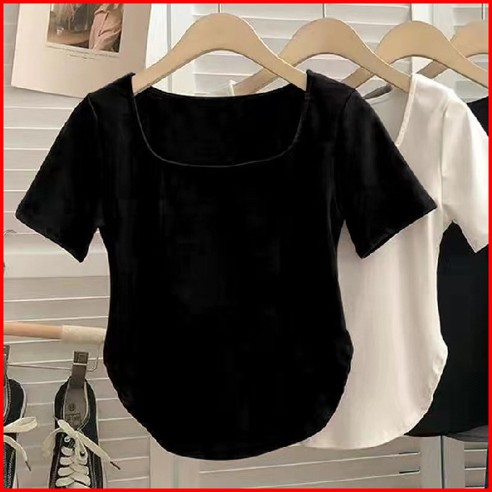 Miss O Bj1172 Baju Atasan Kaos Spandek Korean Wanita Sexy Lengan Pendek Leher Model U Fashion