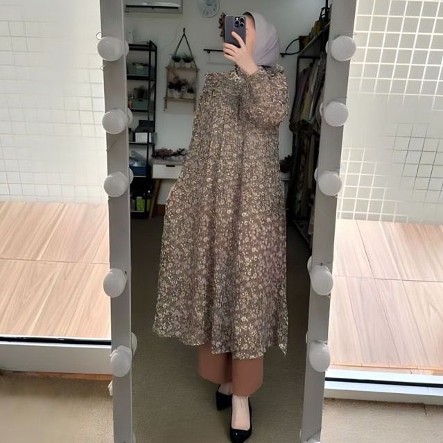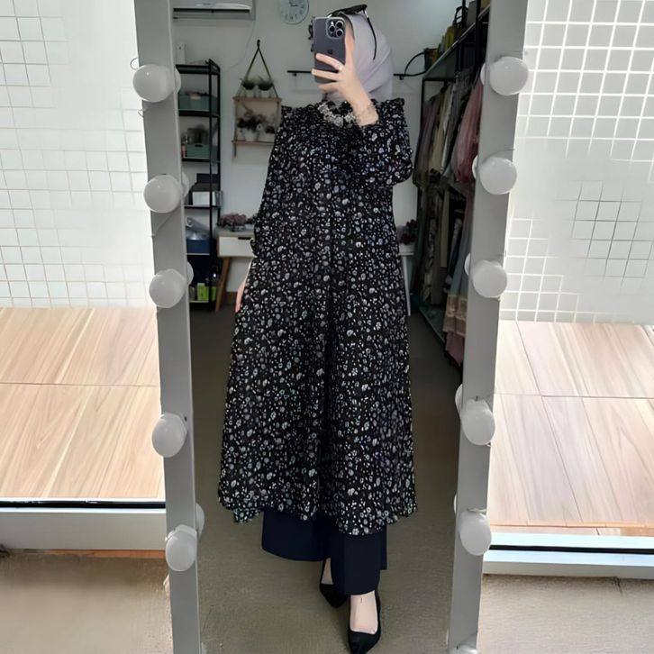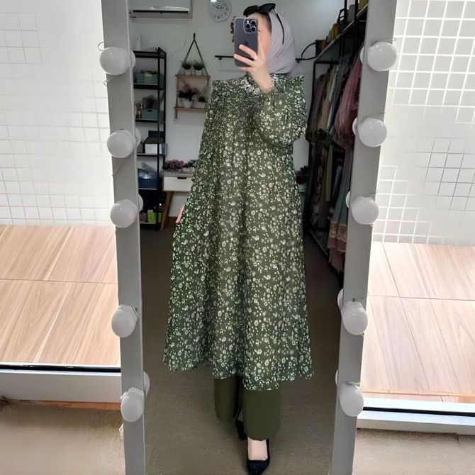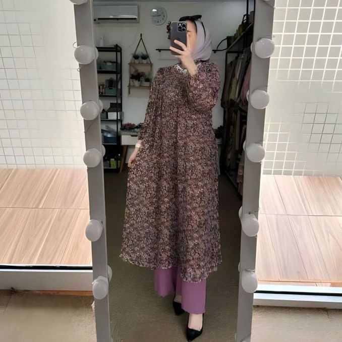PROMO ONE SET AIRA TUNIK CERUTY FULL FURING-SETELAN TUNIK CERUTY MOTIF BUNGA NEW CELANA CRINKLE-ONE SET WANITA TERBARU
