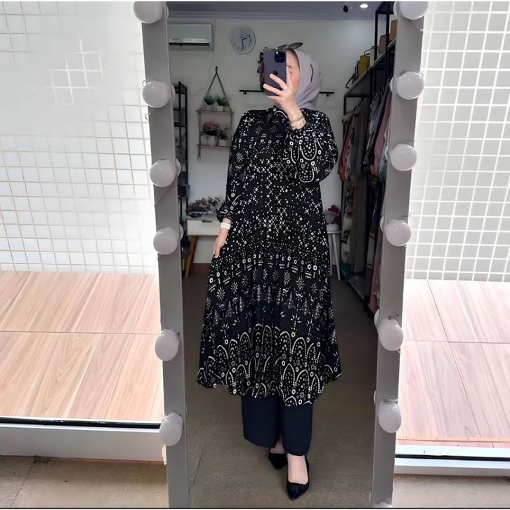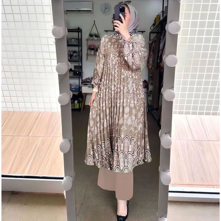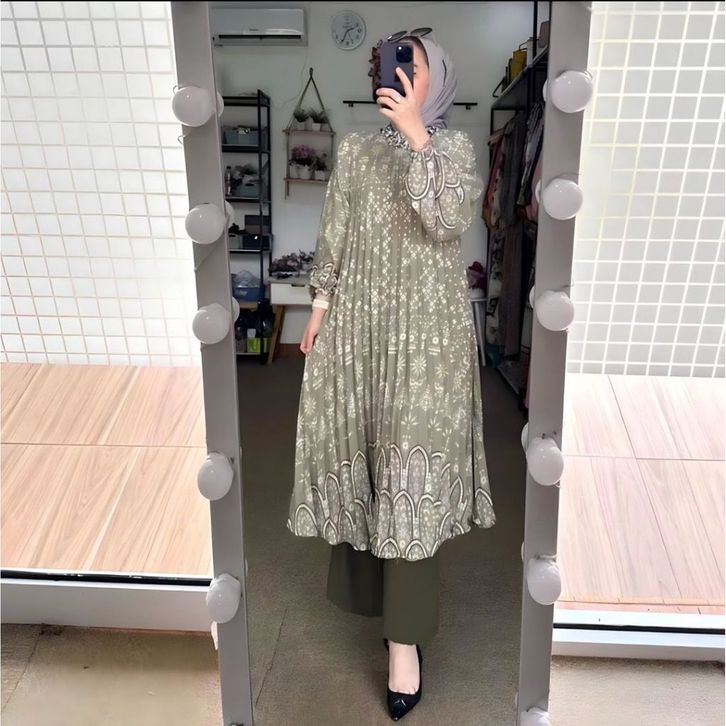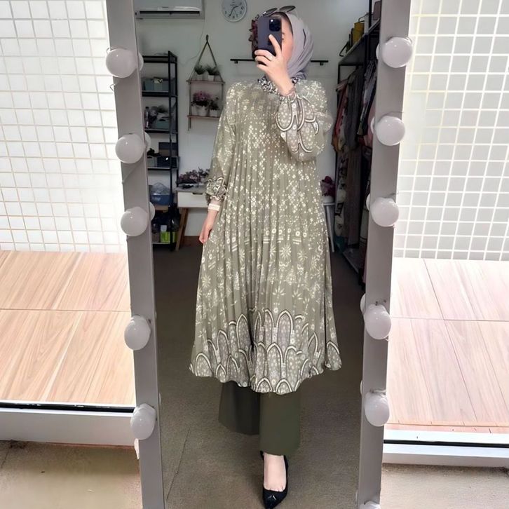 TERLARIS ONE SET NAILA TUNIK PLISKET-SETELAN LONG TUNIK PLISKET MOTIF NEW CELANA CRINKLE PREMIUM-ONE SET WANITA TERBARU