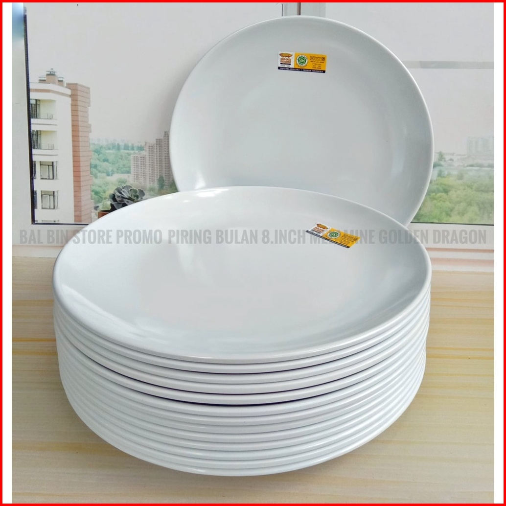 Promo 3 Pcs Piring Bulan 8 Putih Melamine Golden Dragon - Piring Dessert Plate P-10008 Food Grade
