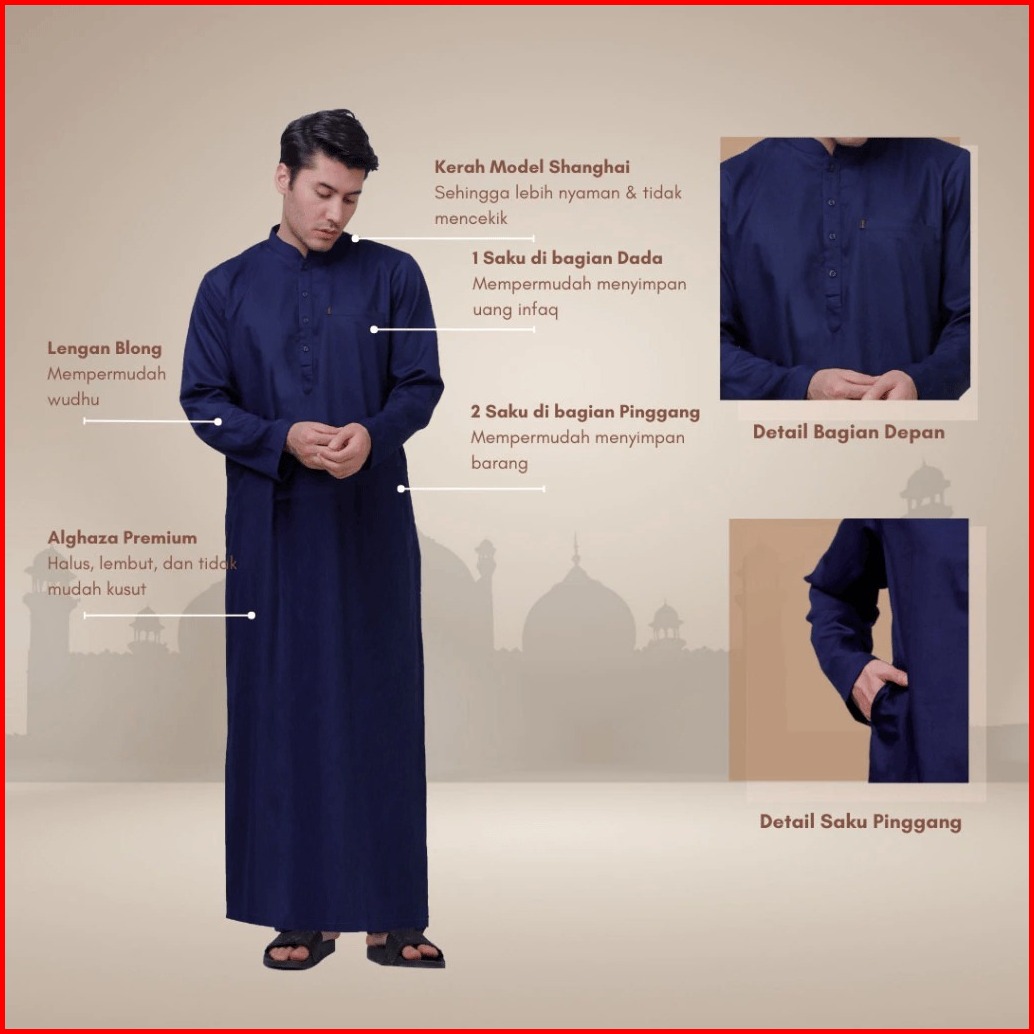 Alghaza Mubarak Jubah Slim Fit Dewasa Cowok Lengan Panjang Gamis Ahmad