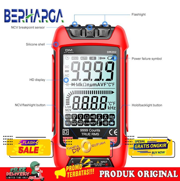 【】【Stok Tersedia】BERHARGA DM202 Multimeter Multifungsi Otomatis Penuh Presisi Tinggi dengan Lampu Latar, Tampilan