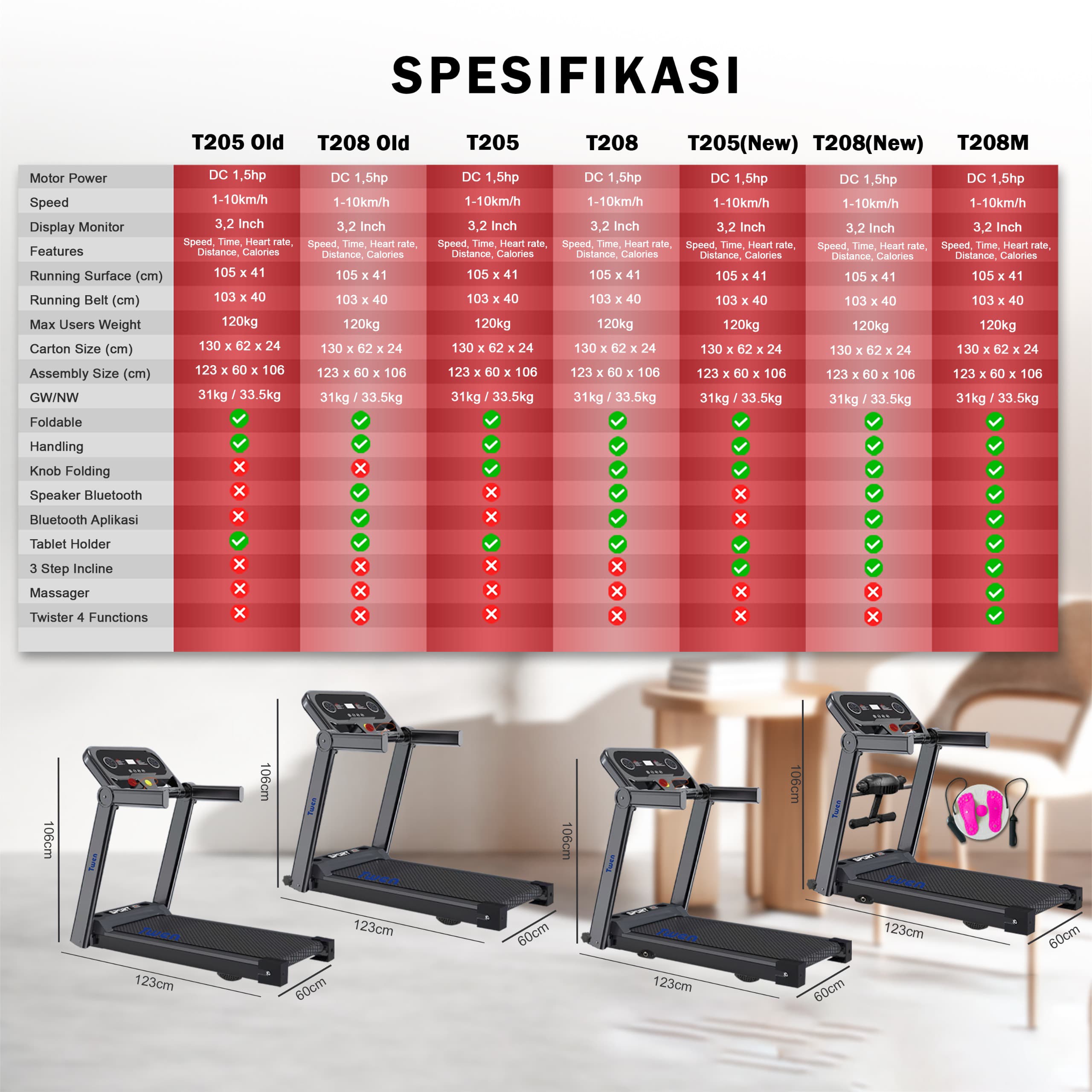 TWEN T205 T208 T208M Teadmill Elektrik Motorized Treadmill Listrik Treadmil