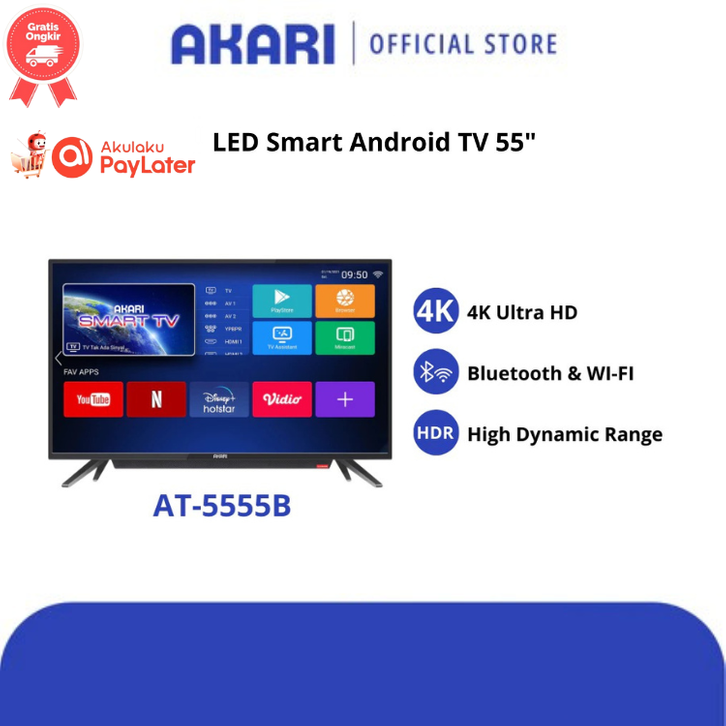 Tv Smart 55 Inch AT-5555B UHD 4K Bluetooth Akari Official Store - Televisi Digital Led
