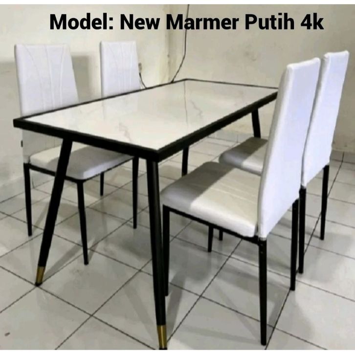 TERLARIS Meja Makan Marmer Minimalis Set 4 Kursi Rangka Besi Stainless Dining Table
