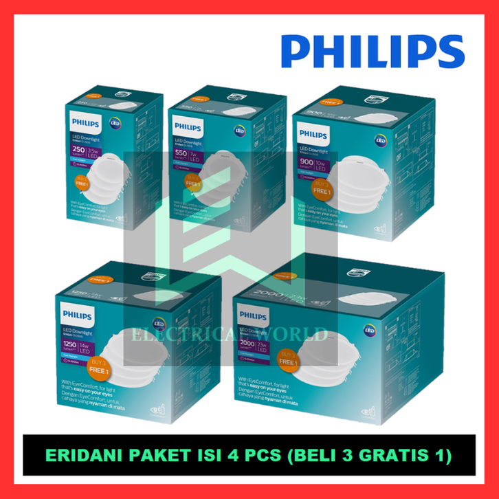 [Star] PAKET ISI 4 Lampu Rumah PHILIPS LED Downlight Eridani Paket 3,5 7 10 14 23 Watt Multipack Lampu Plafon DL190B