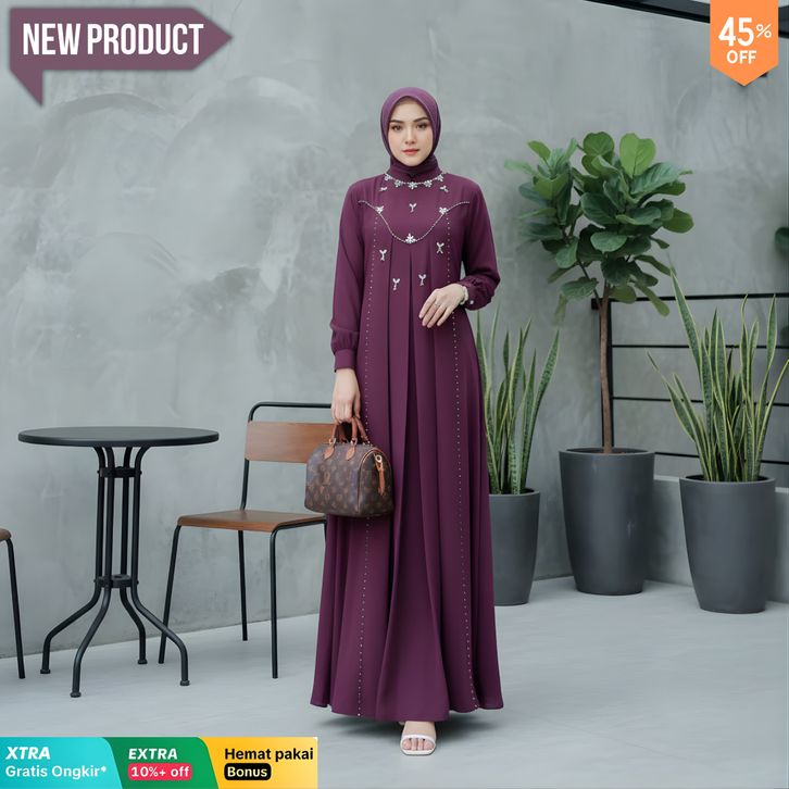 GAMIS LEBARAN 2026 GAMIS MAZAYA DRESS WANITA MOTIF POLOS MIX PAYET PERMATA BAJU MUSLIM