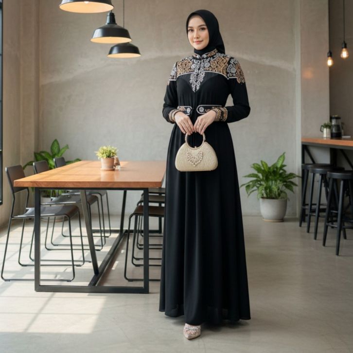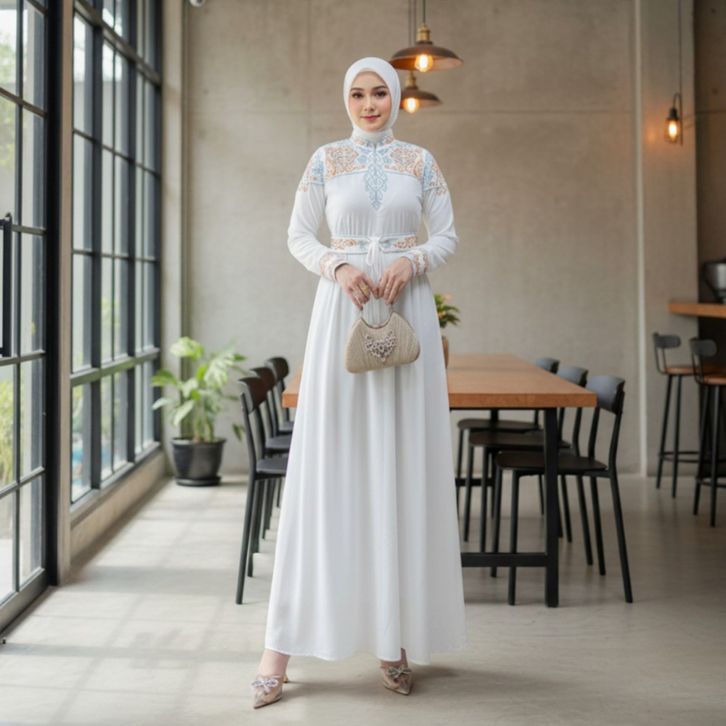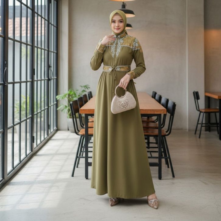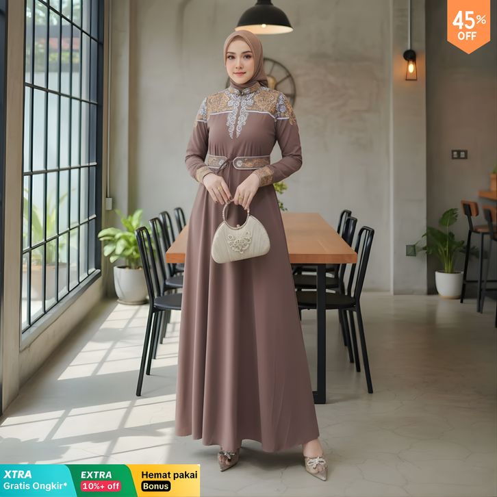 GAMIS LEBARAN 2026 GAMIS SET HIJAB CERUTI BORDIR DRESS SIMPLE ELEGAN BAJU KONDANGAN WANITA KEKINIAN