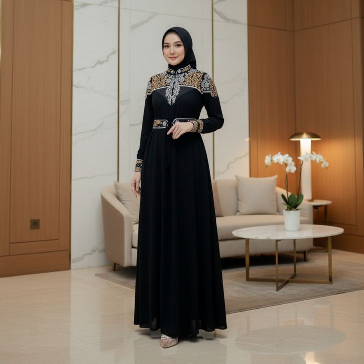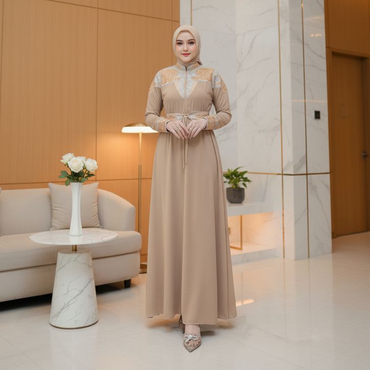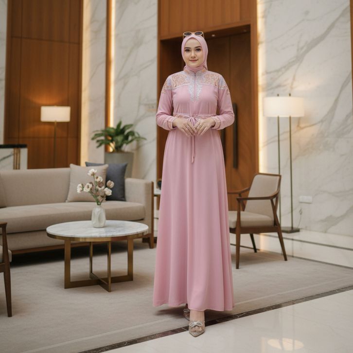 GAMIS LEBARAN 2026 DRESS NIRMALA BAJU GAMIS SET HIJAB CERUTI BABYDOLL MOTIF BORDIR MEWAH AKSEN PAYET PERMATA ELEGAN