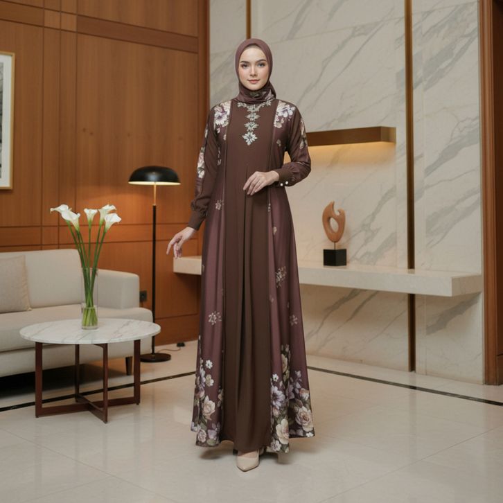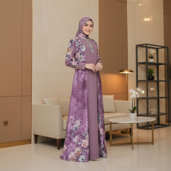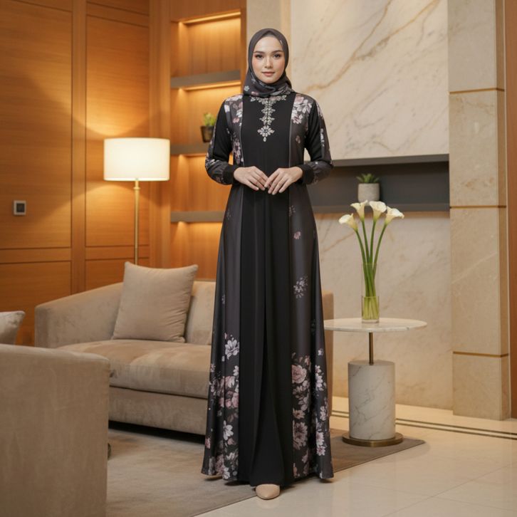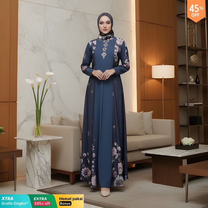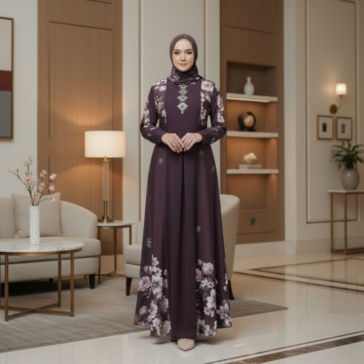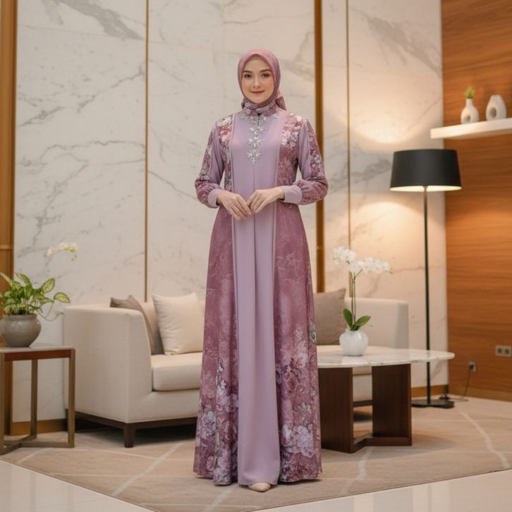 GAMIS LEBARAN 2026 BAJU GAMIS SET HIJAB MOTIF DRESS CASUAL WANITA BAHAN MARBELLA ANTI UV AKSEN PAYET PERMATA ELEGAN