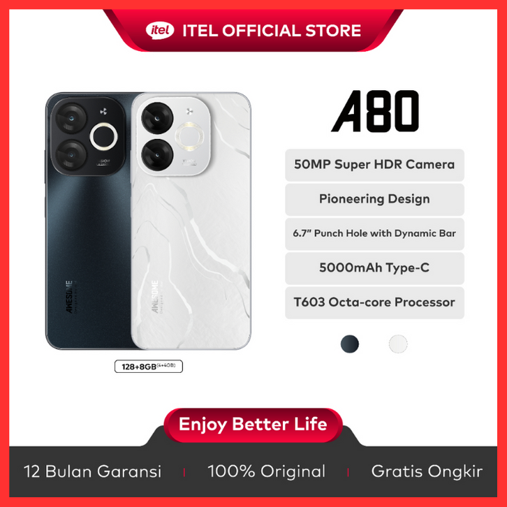 [Star] itel A80 4+4/128GB Memory - 50MP Super HDR Camera - Pioneering Design - 6.7" Punch Hole with Dynamic Bar - 5000mA