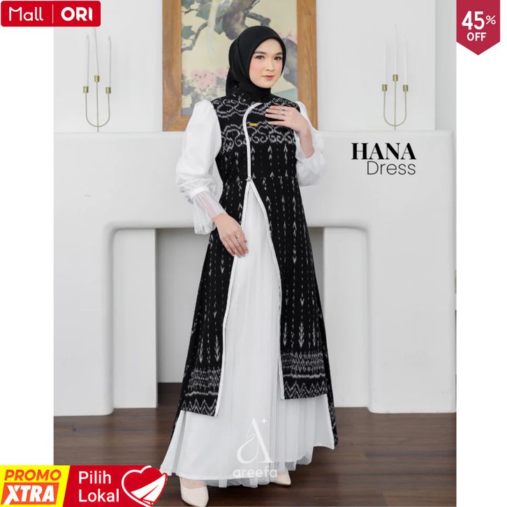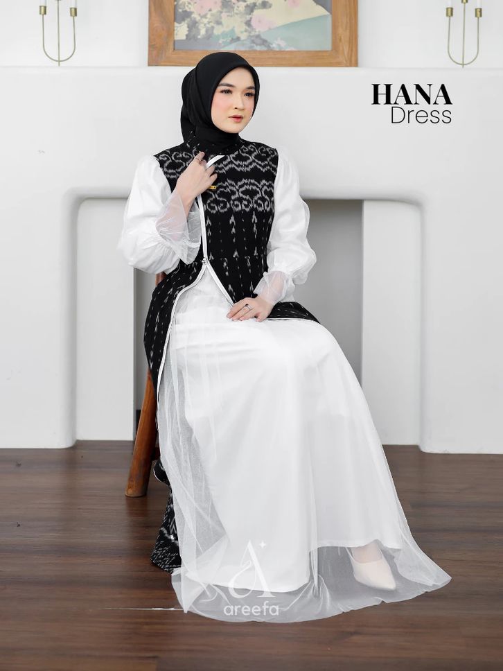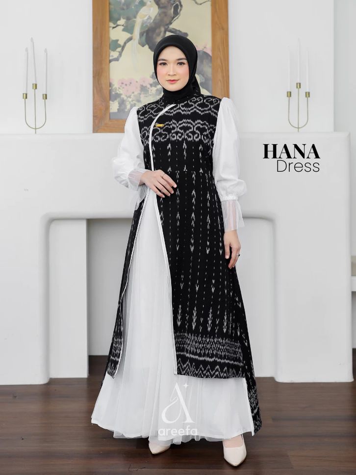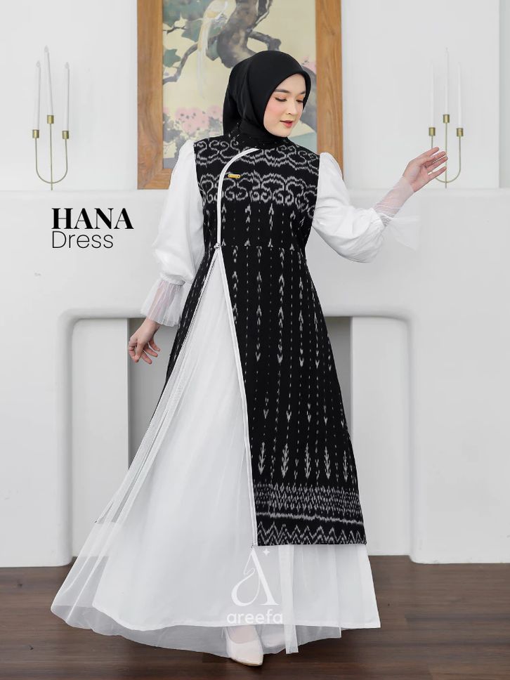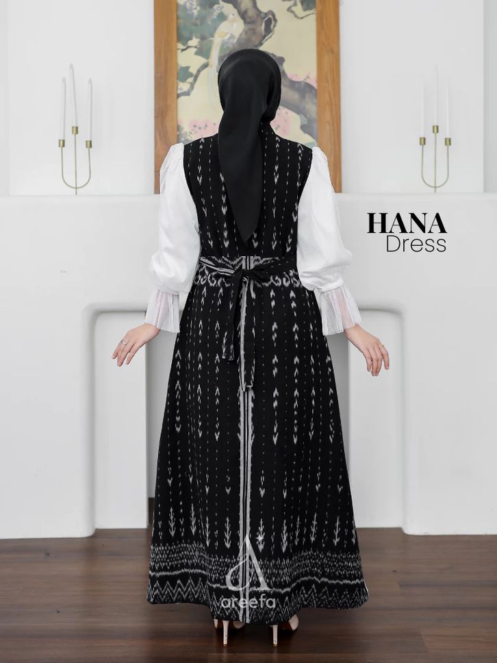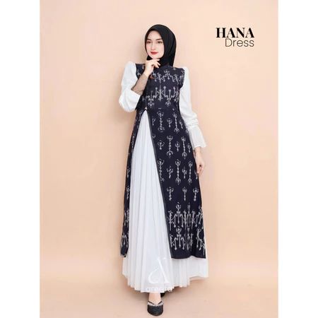 GAMIS LEBARAN 2026 HANA DRESS GAMIS TENUN ETNIK KOMBINASI KATUN TILE PREMIUM WANITA REMAJA KONDANGAN HITAM